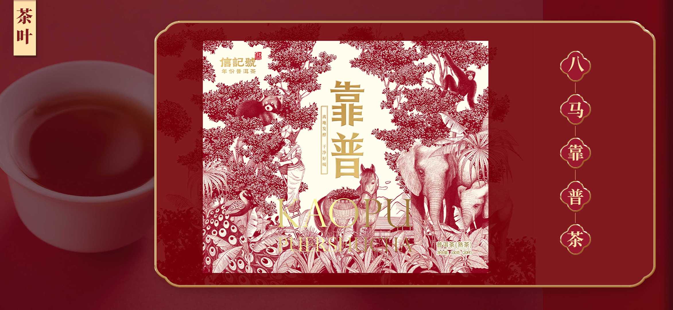 細(xì)節(jié)從品名設(shè)計(jì)入手,用棱角分明,粗寫(xiě)字體傳達(dá)“靠譜的感覺(jué)。通過(guò)手繪云南特色動(dòng)植物構(gòu)建東方茶葉的文化屬性并將此轉(zhuǎn)譯成八馬茶業(yè)獨(dú)特的品牌文化提煉出“密林”&“茶馬”的超級(jí)符號(hào)以“輕奢感”+“自然力”為品牌氣質(zhì)調(diào)性用匠心精神,整體設(shè)計(jì)一改傳統(tǒng)茶葉沉悶的包裝方式禮盒插畫(huà)采用馬、花面貍、孔雀、大象長(zhǎng)臂猿、花卉、樹(shù)木等元素觸發(fā)受眾更靈動(dòng)的視覺(jué)感官猶如闖入一場(chǎng)森林冒險(xiǎn)使包裝整體達(dá)到人與自然的和諧靈氣。一筆一畫(huà)詮釋八馬靠普茶為大眾展現(xiàn)一場(chǎng)浸潤(rùn)密林的東方茶文化生活美學(xué)大賞~
