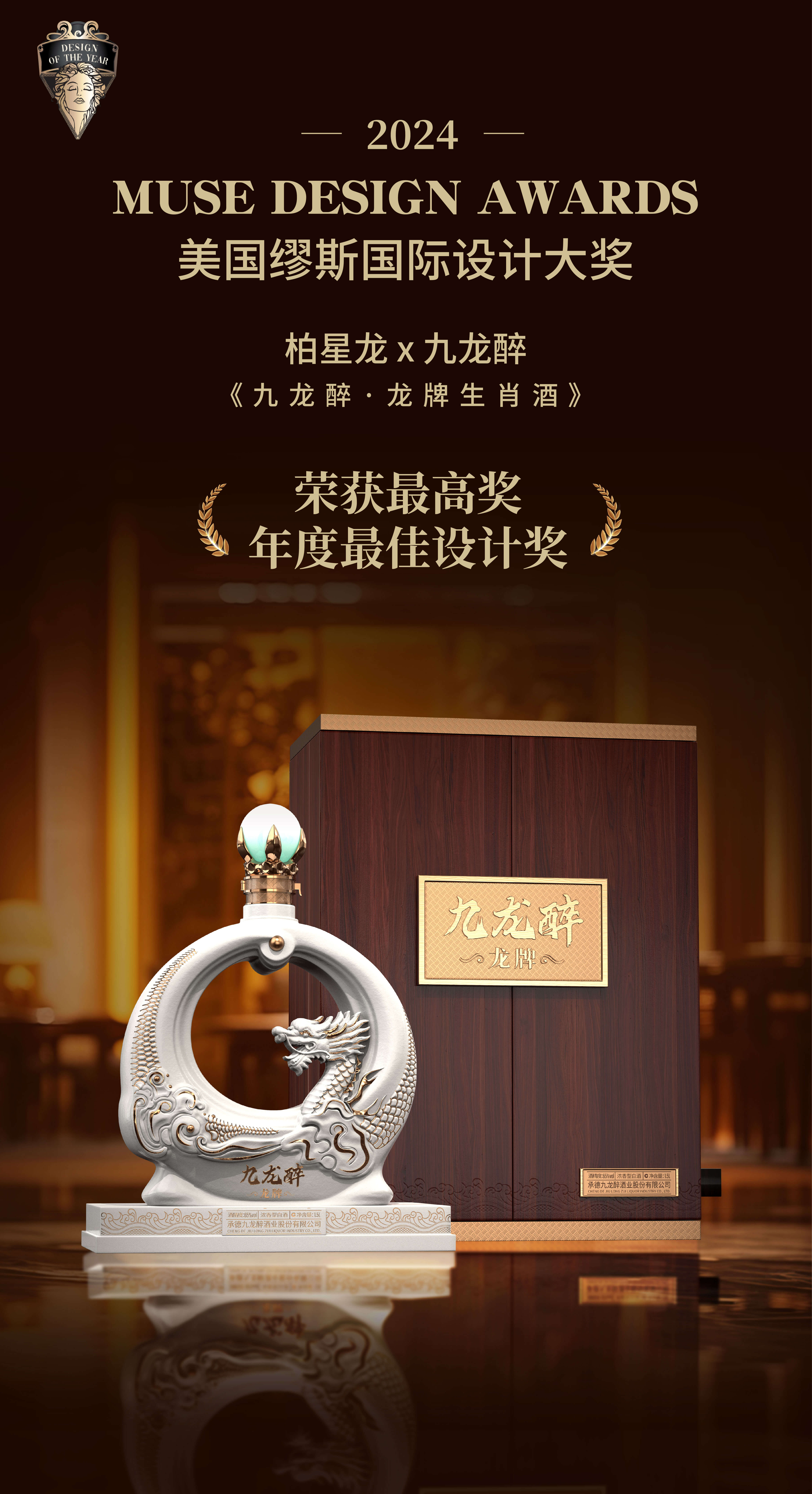 2024 美國繆斯國際設計大獎(MUSE Design Awards)最高獎-「年度最佳設計獎」于近日公布獲獎結果,其中由柏星龍傾力打造的“九龍醉·龍牌生肖酒”設計作品最終憑借其獨特的設計理念和卓越的藝術表現(xiàn)力脫穎而出,一舉斬獲了這一殊榮。
