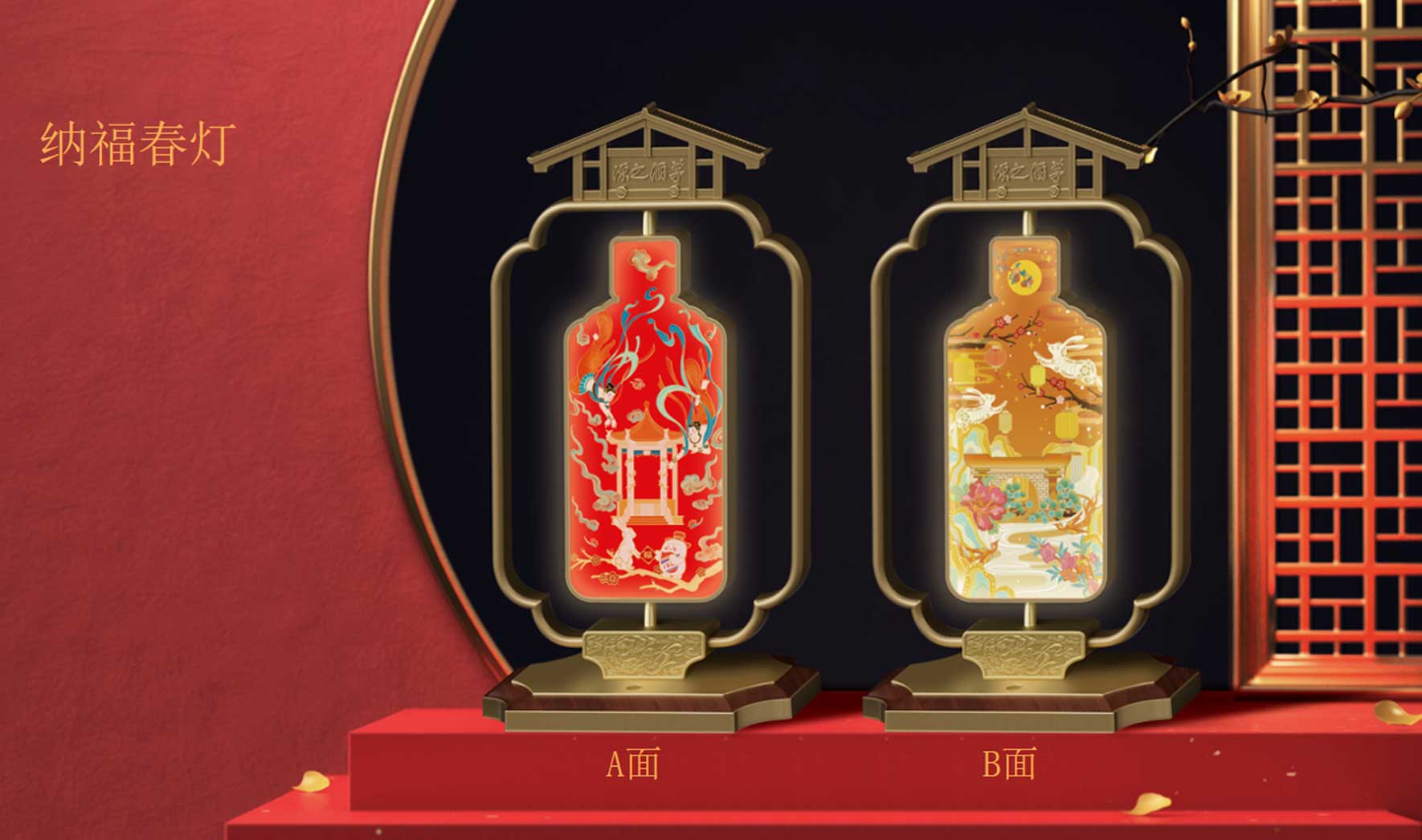 將茅臺(tái)酒文化與中國(guó)春節(jié)花燈文化相結(jié)合把茅臺(tái)酒釀酒工業(yè)遺產(chǎn)群的門匾“茅酒之源融入傳統(tǒng)春燈造型中,點(diǎn)亮春燈,祥和光輝相互照映設(shè)計(jì)師在延續(xù)茅臺(tái)經(jīng)典品牌印記的同時(shí),在春燈上用了原創(chuàng)插畫(huà)和茅型瓶經(jīng)典符號(hào)做了創(chuàng)變可兩面翻轉(zhuǎn)增添節(jié)日樂(lè)趣。