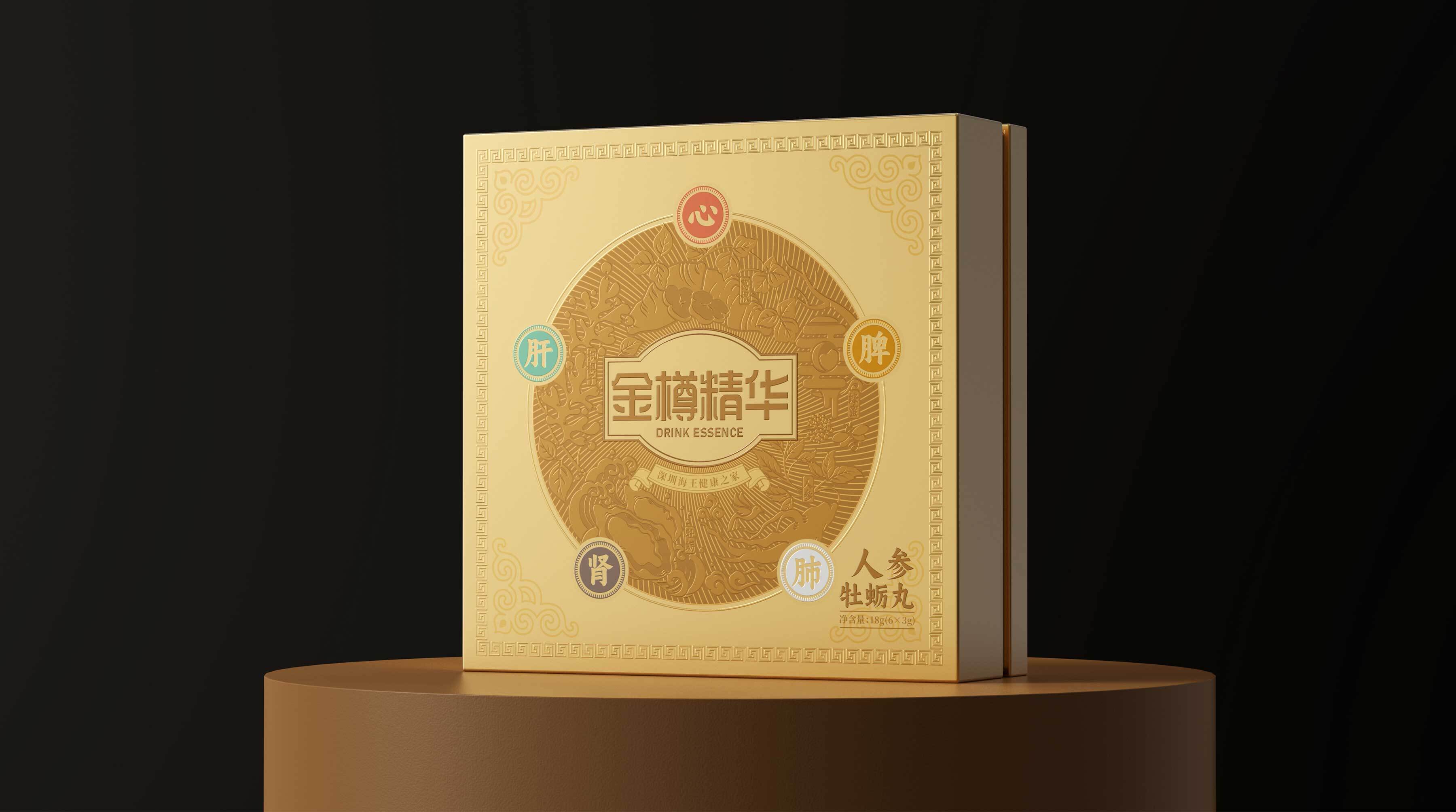 將五行概念與精華元素合為一體,打造專(zhuān)屬于“金樽精華”的產(chǎn)品特征,同時(shí)底紋采用回形文的延申,加強(qiáng)品牌特征。