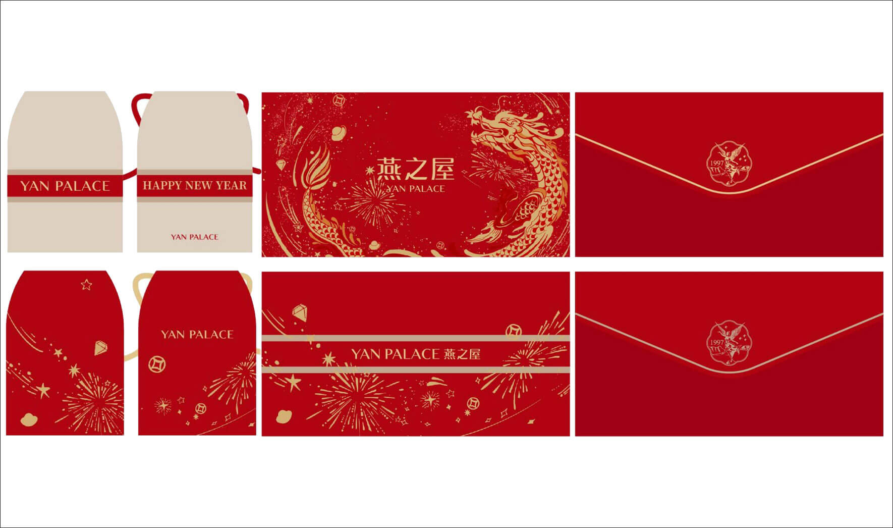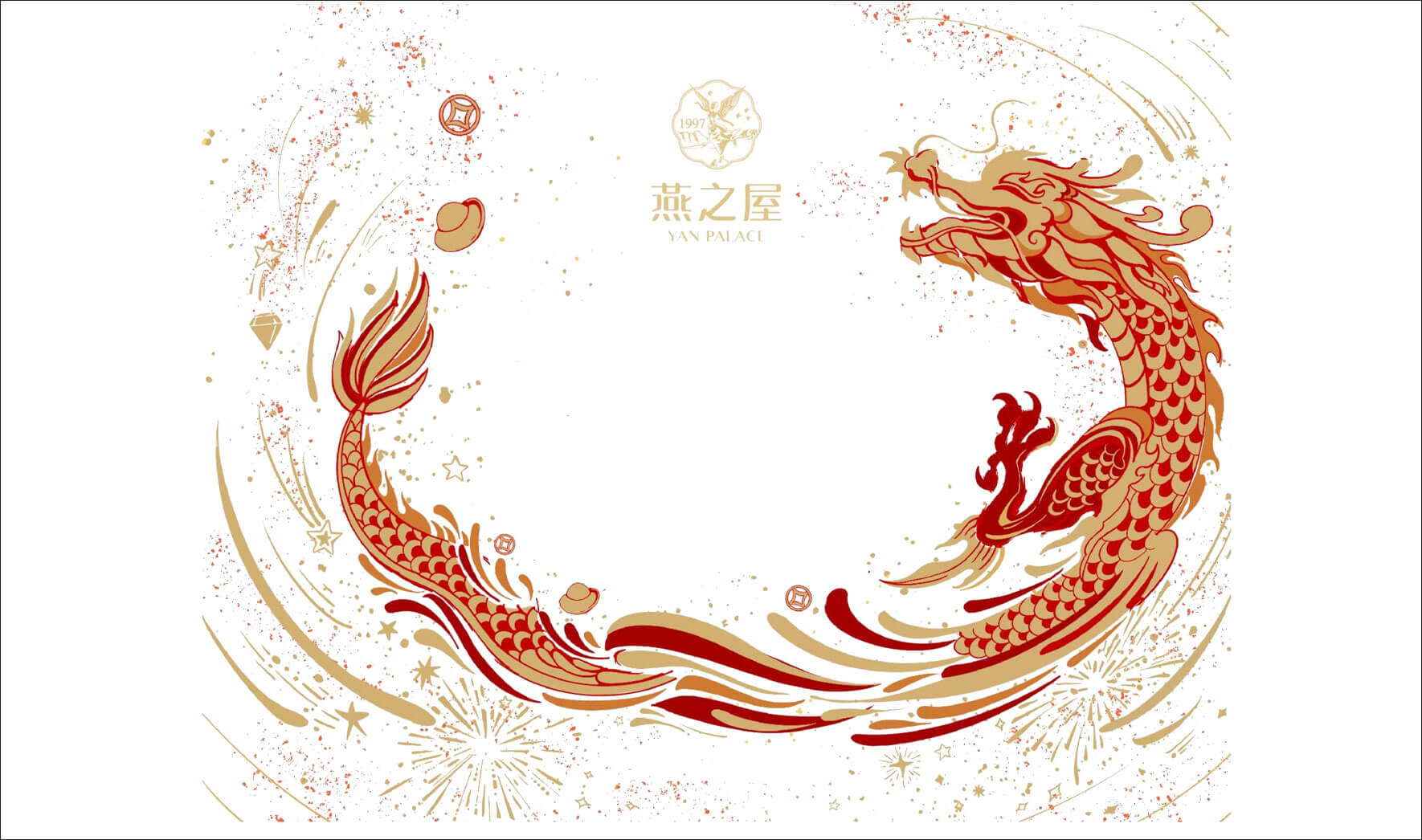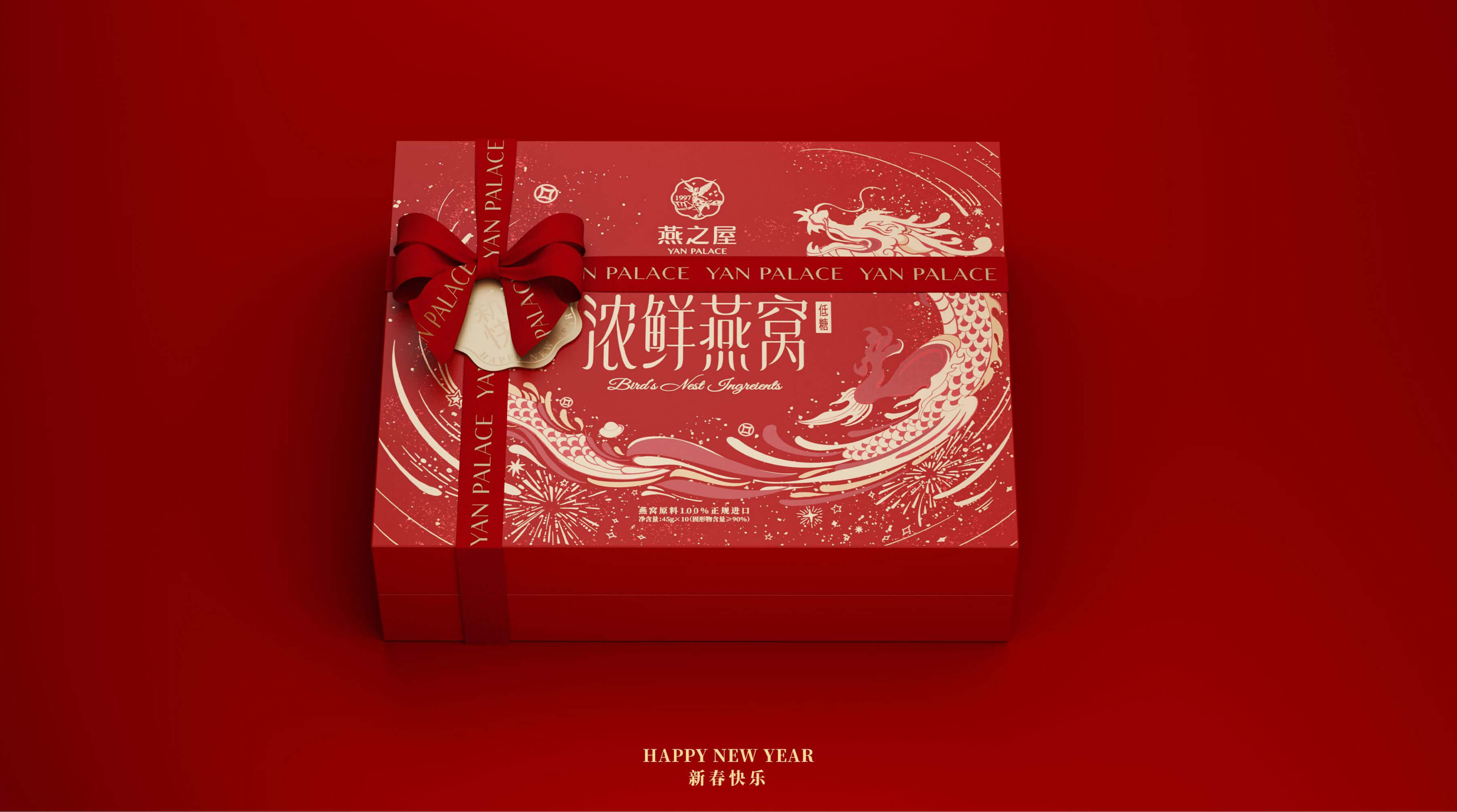 龍的形象采用手繪插畫(huà)形式表現(xiàn),結(jié)合新年的熱鬧元素,構(gòu)成一幅喜氣洋洋的場(chǎng)景,中間圍繞著品牌,寓意將福氣與祥瑞送予燕之屋,同時(shí)將這一份東方的鮮禮--濃鮮燕窩代表的情意濃濃傳遞給尊貴的客戶(hù)。