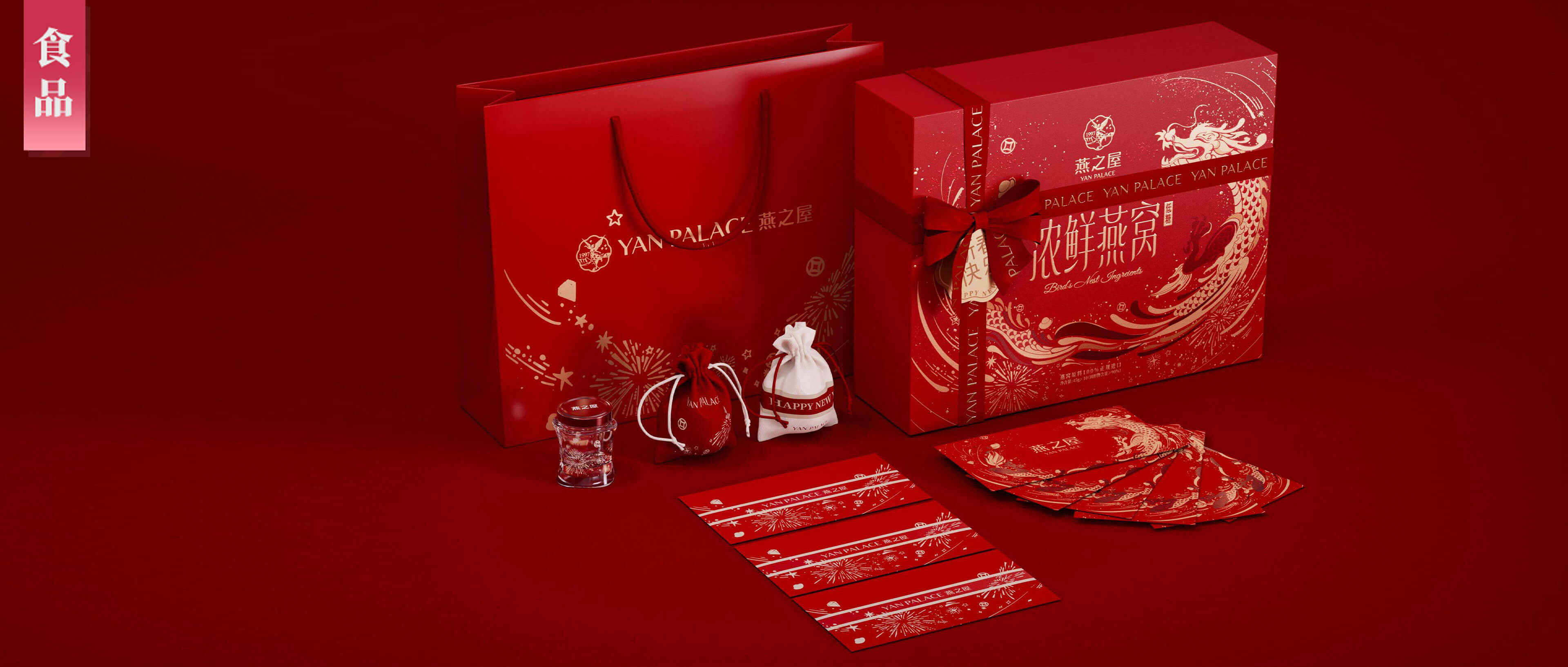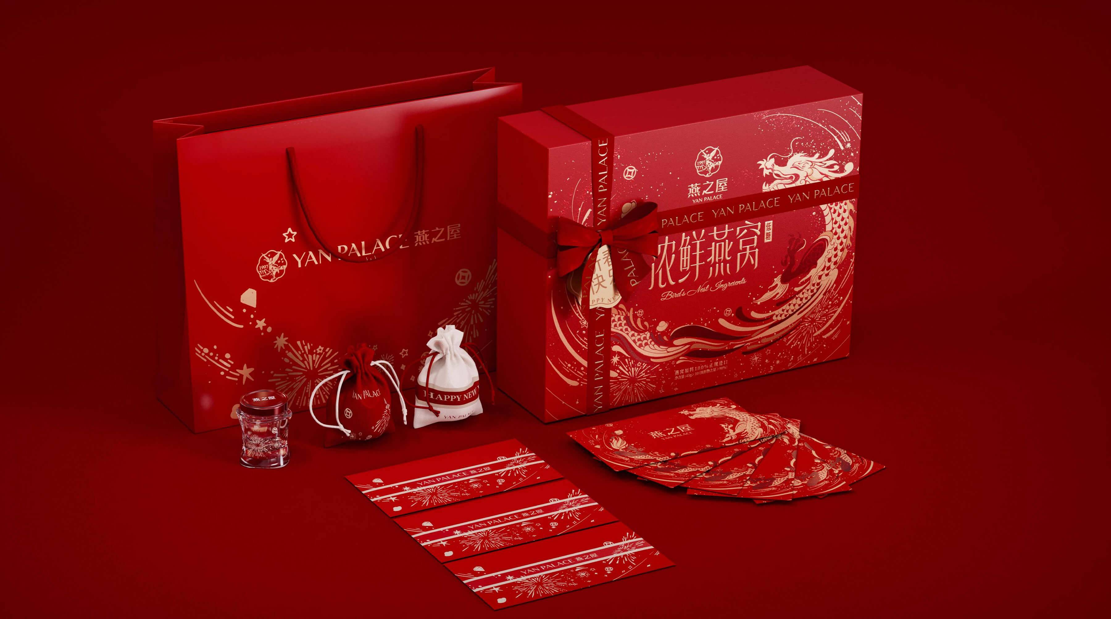 系列延展出福袋與紅包作為春節(jié)周邊,每盒濃鮮燕窩內(nèi)配兩個(gè)福袋裝著祝福漂流瓶,定制紅包可贈(zèng)送予VIP客戶(hù),打造節(jié)日氛圍感與送禮儀式感。