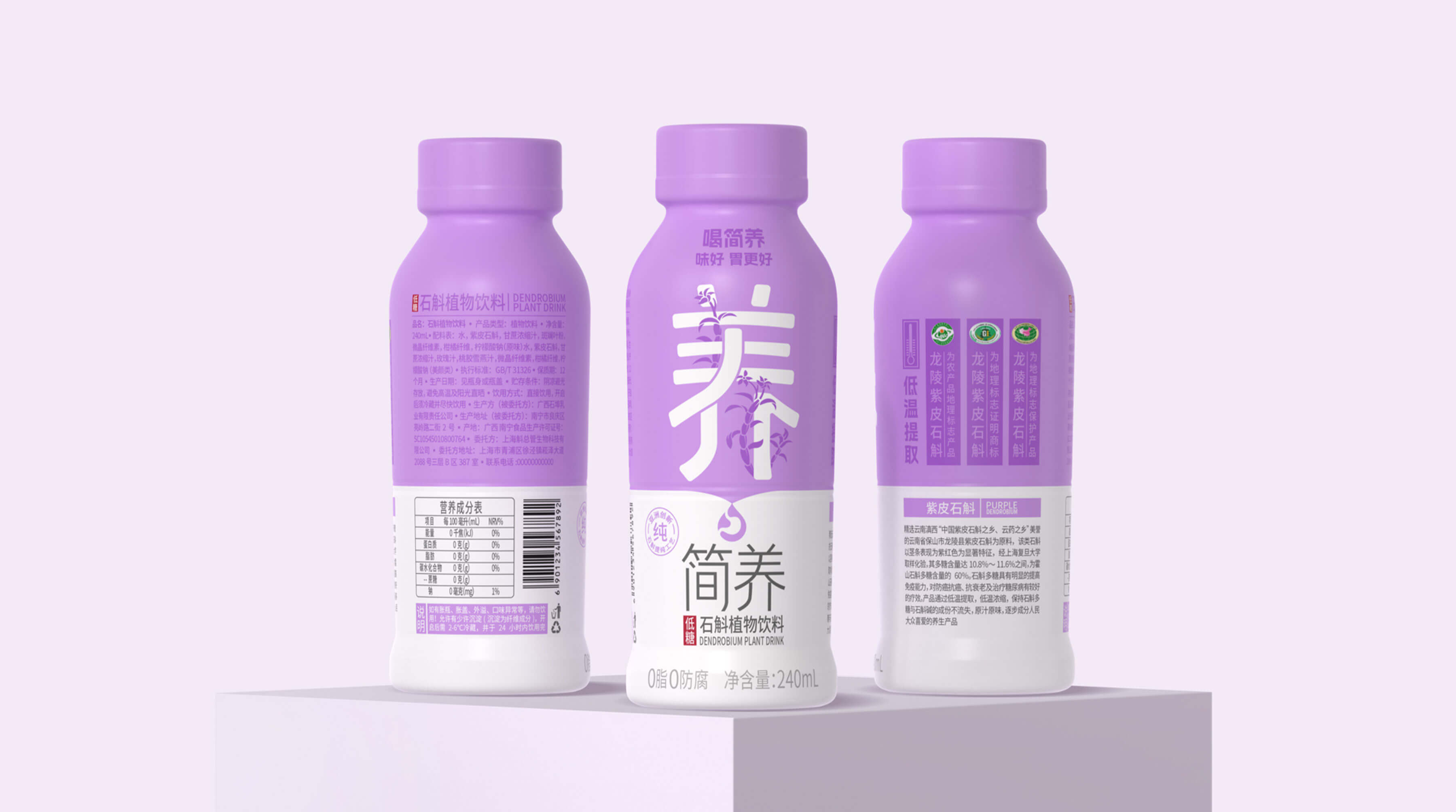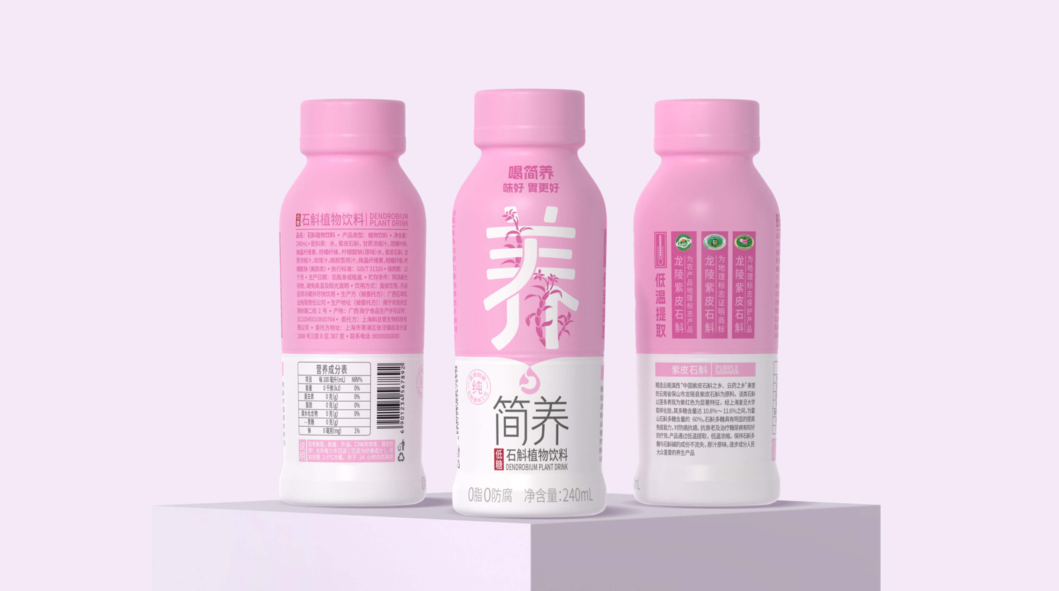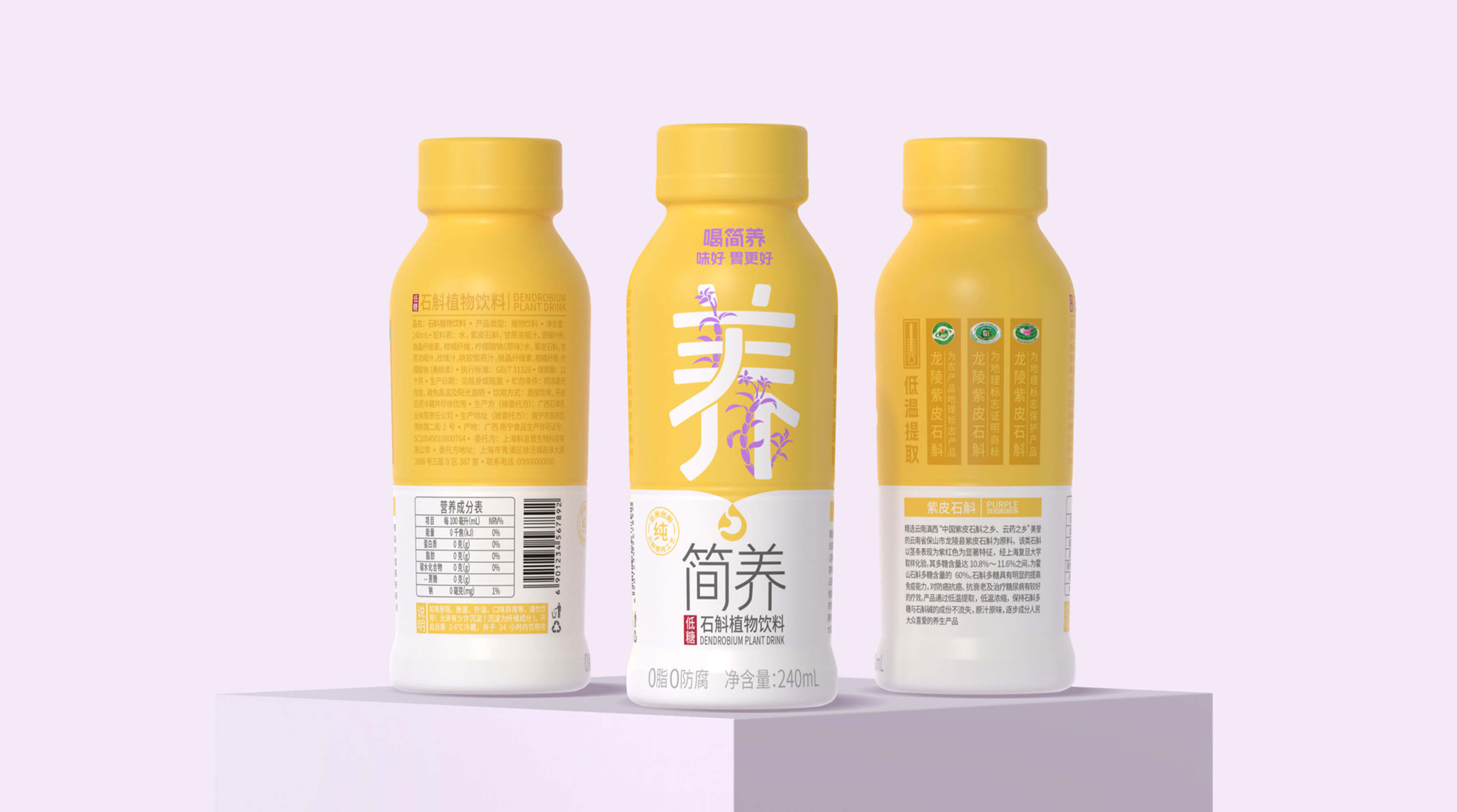【簡養(yǎng)】是一個以鮮鐵皮石斛萃取原液的養(yǎng)胃植物飲料品牌,專注為消費(fèi)者打造的健康飲料品牌。2023年,柏星龍與【簡養(yǎng)】品牌創(chuàng)意攜手,為簡養(yǎng)產(chǎn)品搭建從0-1的落地執(zhí)行路徑,從新的視覺維度打造與眾不同的養(yǎng)生飲料品牌。