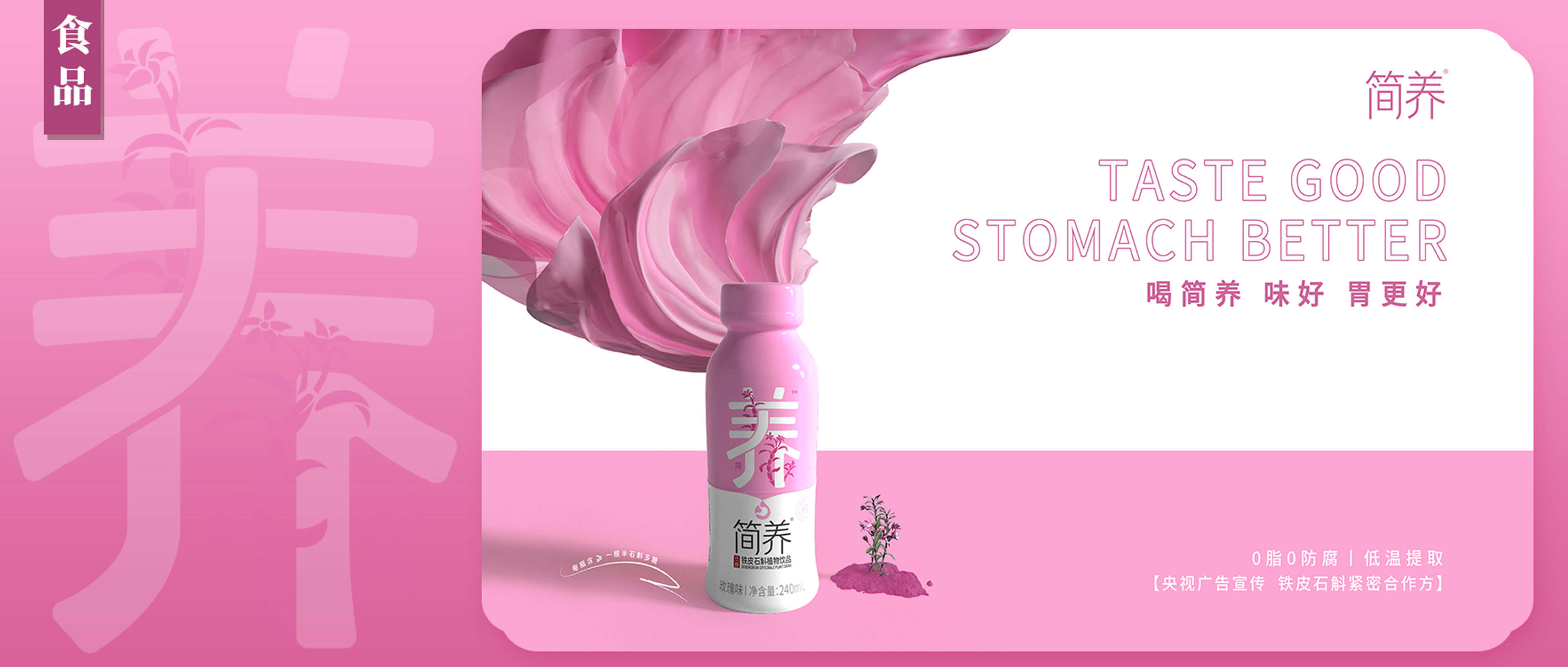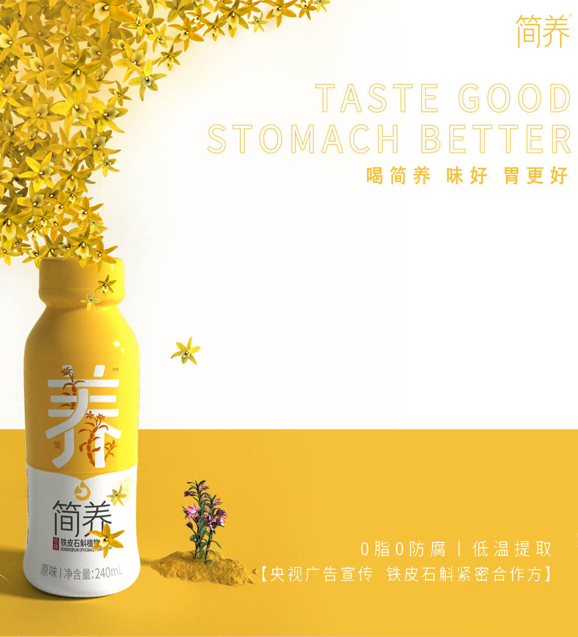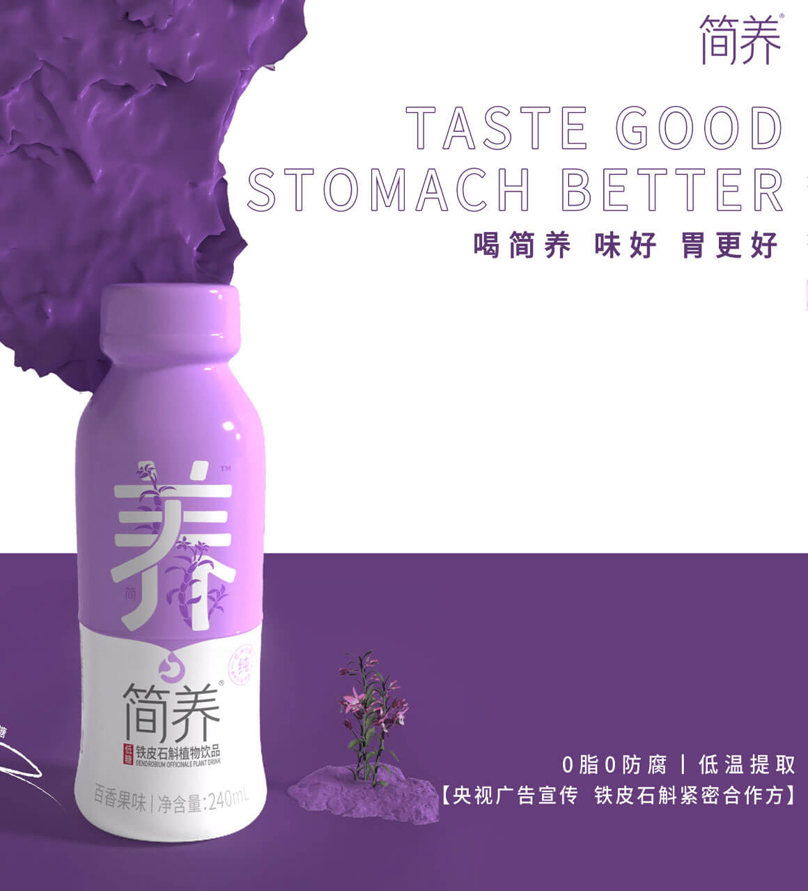【簡養(yǎng)】是一個以鮮鐵皮石斛萃取原液的養(yǎng)胃植物飲料品牌,專注為消費(fèi)者打造的健康飲料品牌。2023年,柏星龍與【簡養(yǎng)】品牌創(chuàng)意攜手,為簡養(yǎng)產(chǎn)品搭建從0-1的落地執(zhí)行路徑,從新的視覺維度打造與眾不同的養(yǎng)生飲料品牌。
