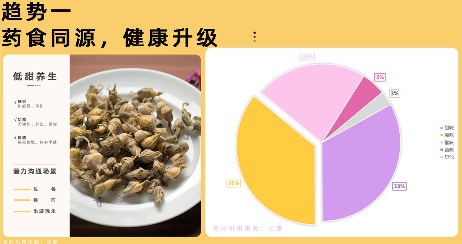 幸福之源不止于甜味,藥食同源支撐健康食材更升級。低甜、自然本真的口味特征,很好匹配“低甜養(yǎng)生”與“本味節(jié)制”消費(fèi)者感官需求,適配餐后、學(xué)習(xí)等潛力場景。