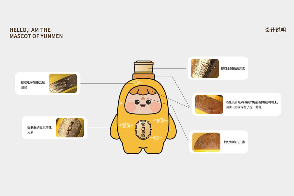 云寶臉部四肢更加Q版的形象設(shè)計(jì),憨態(tài)可掬的神態(tài),寓意著云門(mén)醬酒為用戶提供真實(shí)、可信、快樂(lè)購(gòu)酒的初心。